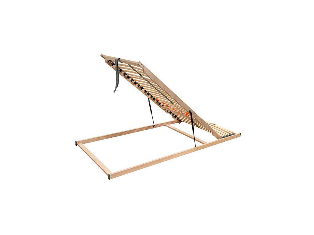 Praktický postelový rošt Flexora s výklopem nožní části umožňuje pohodlný přístup do úložného prostoru pod lůžkem. Zdvih pomocí textilního úchytu usnadňuje každodenní manipulaci. Pružné lamely uložené ve dvojicích v kaučukových pouzdrech jsou rozložené do 5 anatomických zón, vrtané lamely v ramenní oblasti snižují tlak na ramena. Středový popruh zajišťuje stabilitu a nosnost, posuvné objímky umožňují individuální nastavení tuhosti v bederní části. Lamely s fólií snižují prach a vlhkost, což ocení zejména alergici.