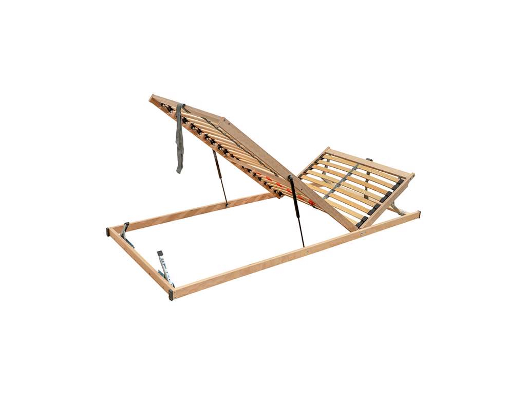 Lamelový rošt Flexora spojuje praktičnost s pohodlím a zdravou oporou při spánku. Díky konstrukci s vyklápěním nožní části pomocí pístu zajišťuje rychlý a pohodlný přístup do celého úložného prostoru pod postelí. Zároveň lze rošt napolohovat v oblasti hlavy i nohou, což přináší komfort při čtení, relaxaci i při zdravotních obtížích. Každodenní manipulaci výrazně usnadňuje textilní úchyt, díky kterému je ovládání jednoduché a praktické.
