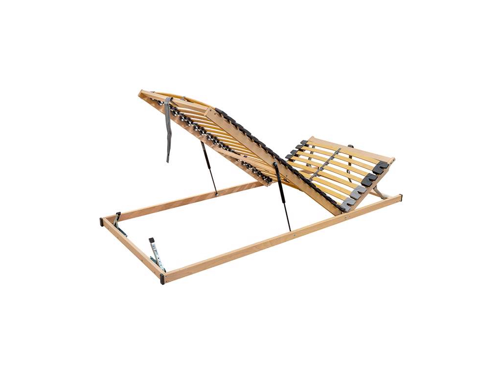 Vyklápěcí nožní část pomocí pístu umožňuje jednoduchý přístup do celého úložného prostoru pod lůžkem. Rošt lze zároveň polohovat v oblasti hlavy i nohou, což zvyšuje pohodlí při relaxaci a čtení.
