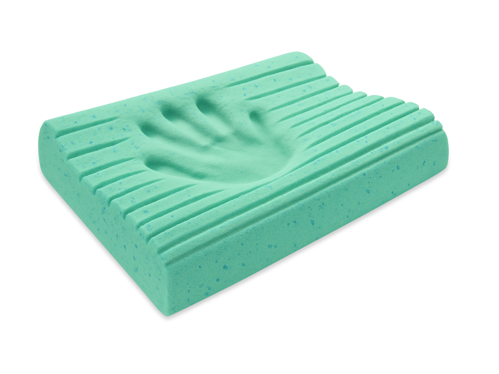 Skvěle tvarovaný anatomický polštář z paměťové pěny: Jádro polštáře tvoří kvalitní italská paměťová pěna s chladivým gelem ICE-GEL o objemové hmotnosti 50 kg/m³. Nabízí jistou, středně tuhou oporu (tuhost H3), která se přizpůsobí tlaku i teplotě těla a pomáhá uvolnit krční páteř.