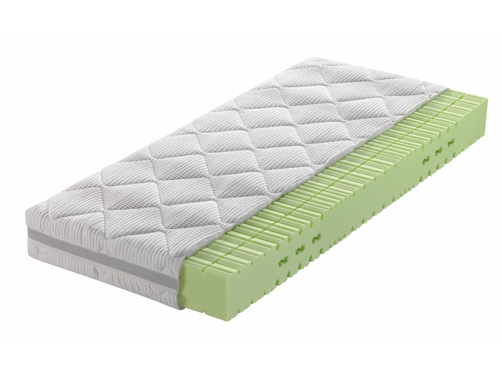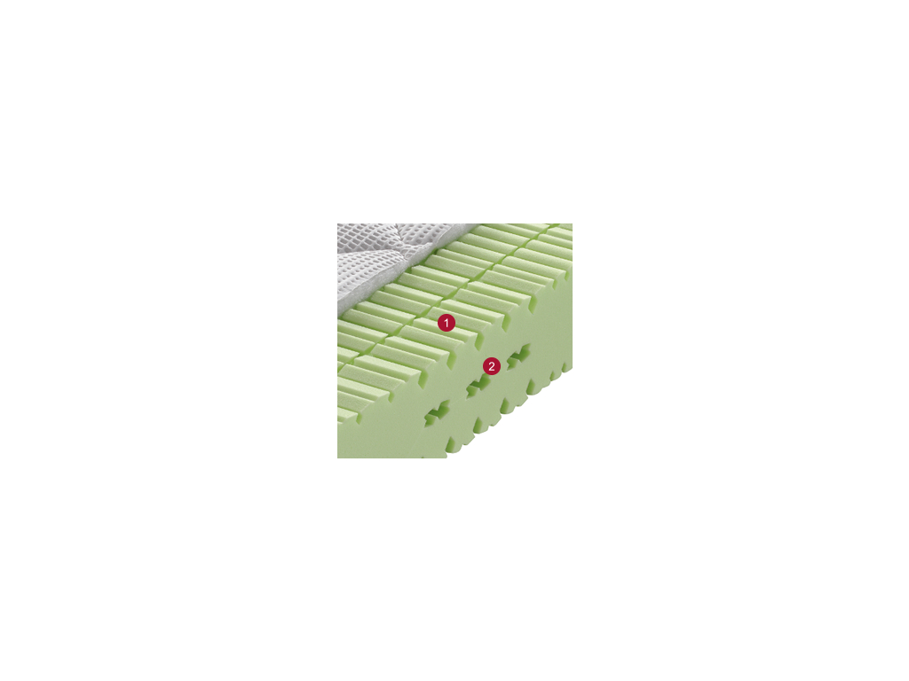 - Prodyšná, vysoce hodnotná sedmizónová studená pěna EMC s otevřenými póry zaručuje optimální uvolnění od tlaku a příjemně suché spánkové klima.